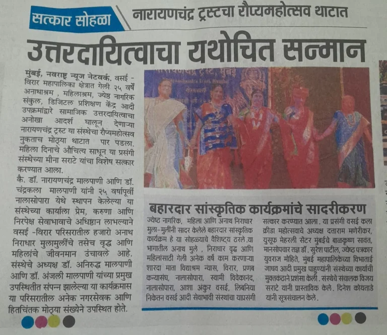 Late Dr. N. K. Malpani & late Dr. (Mrs.) C.N. Malpani wanted to help poor children and orphans. They established the Narayanchandra Trust in 2001. This is a registered Charitable Trust under the Charitable Public Trust Act. 1950 and Income Tax Exemption Under 80-G.